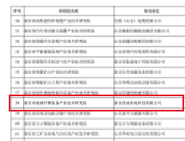 根據(jù)《泰安市產(chǎn)業(yè)技術(shù)研究院管理暫行辦法》(泰科發(fā)〔2017〕8號(hào)),泰安佳成機(jī)電科技有限公司申請(qǐng)組建的“泰安市玻璃纖維裝備產(chǎn)業(yè)技術(shù)研究院”,通過(guò)泰安市科學(xué)技術(shù)局評(píng)審、論證和公示,被認(rèn)定為“泰安市產(chǎn)業(yè)技術(shù)...